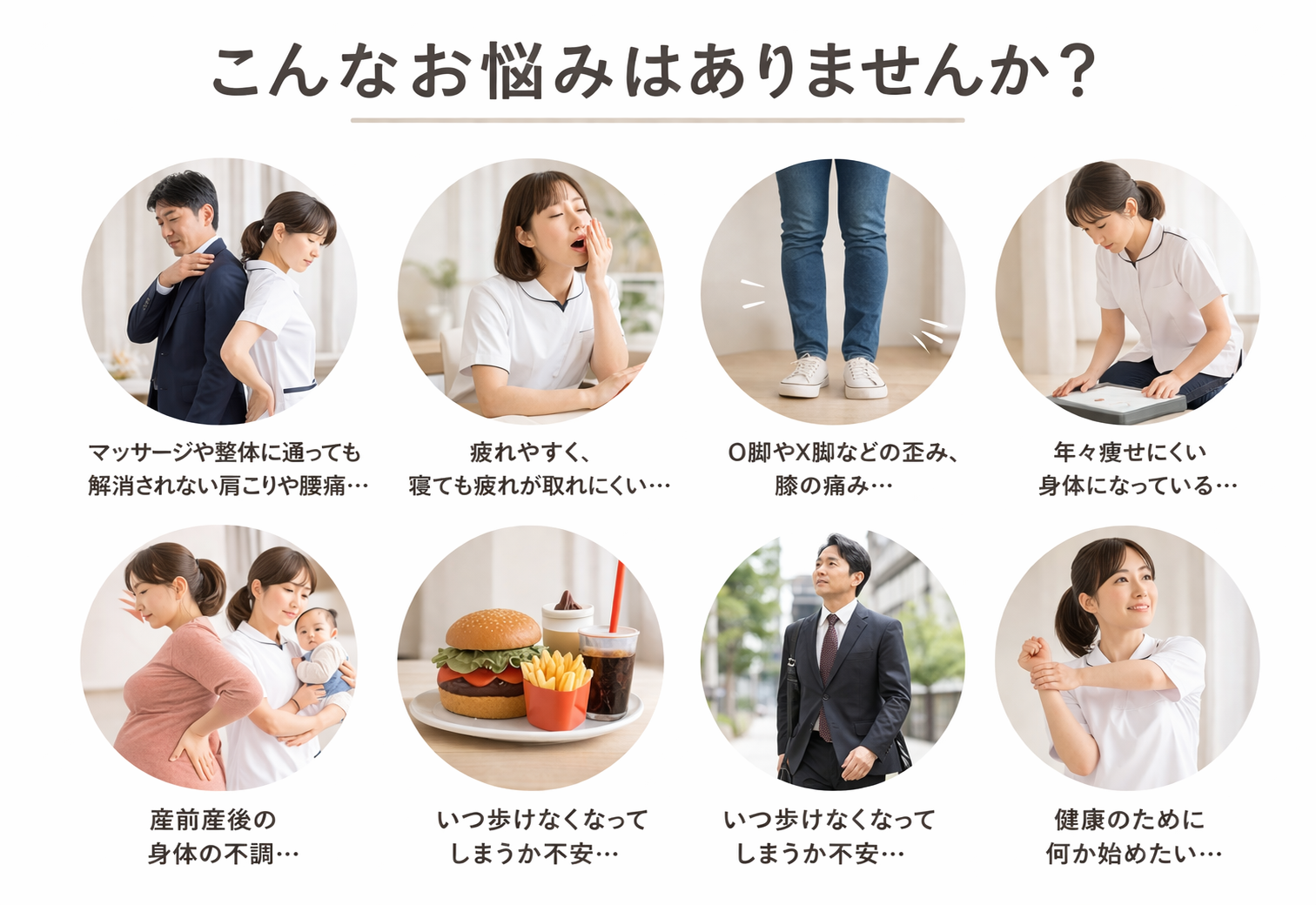 こんな方におすすめ:足の冷えやむくみを感じやすい方。長時間のデスクワークの方。猫背や反り腰姿勢が気になる方。