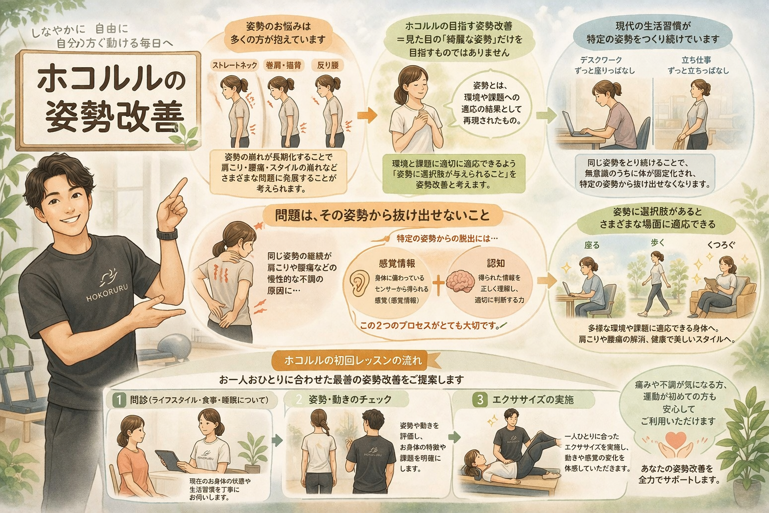 ホコルルでは環境と課題への適切な適応のための、姿勢に選択肢が与えられることを姿勢改善と考えます。