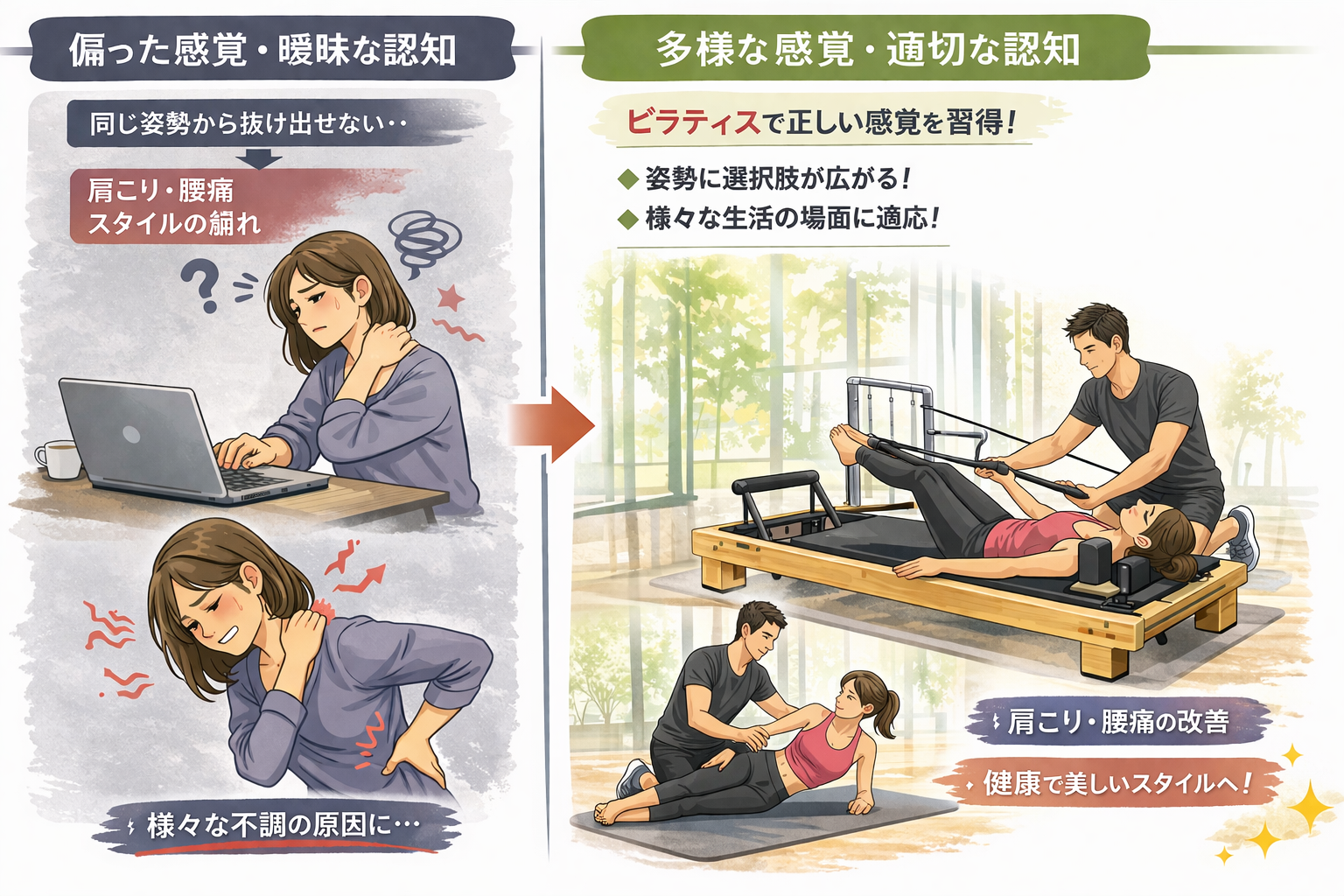 特定の姿勢からの脱出には、筋肉や関節を動かすことはもちろん必要ですが、私たちの身体に備わっているセンサーの働きから得られる『感覚情報』とそれらの情報を『認知』するというプロセスが大切です。